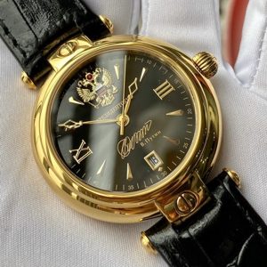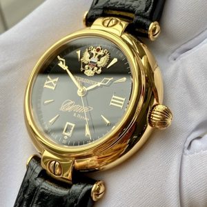 Mặt đồng hồ: Mặt đen số la mã kim mũi giáo quốc huy Nga gắn ruby