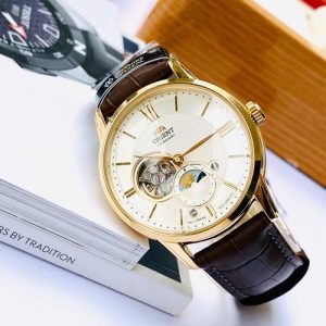 Với thiết kế đơn giản, viền được mạ vàng sang trọng, kim chỉ được làm thanh mảnh nhẹ nhàng, kết hợp cùng dây da đen tiện dụng