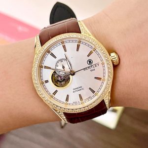 Dial mới với cọc số và viền đính đá sáng bóng, mặt trải tia cực đẹp