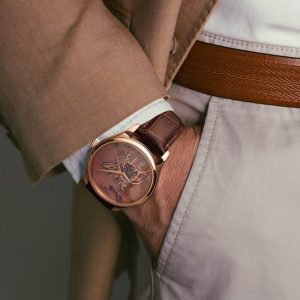 - Không chỉ dừng lại ở đó, điều làm lên ấn tượng sang trọng của Carnival Mục Đồng Cưỡi Trâu còn nằm ở thiết kế viền ngoài và mặt số. Giải quyết bài toán nổi bật, các nghệ nhân Carnival đã tỉ mỉ gia công phần VỎ MẠ VÀNG HỒNG PVD sáng bóng với phần thân là mạ xước khác biệt và viền bezel là mạ vàng bóng bẩy.
