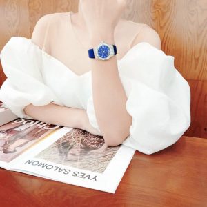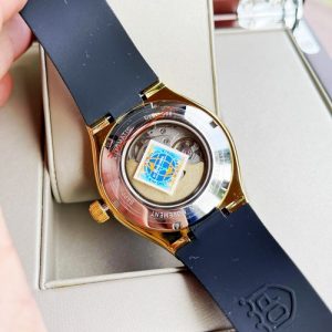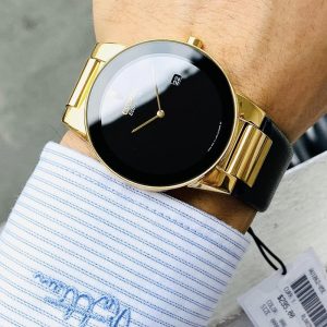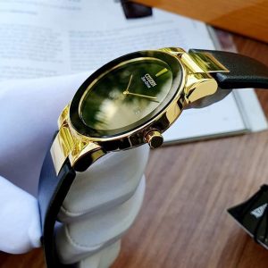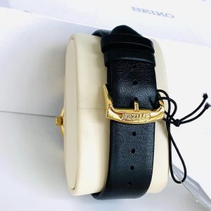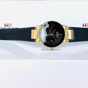 Với thiết kế đơn giản, viền được mạ vàng sang trọng, kim chỉ được làm thanh mảnh nhẹ nhàng, kết hợp cùng dây da đen tiện dụng