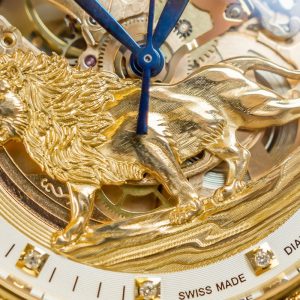 Với thời gian hoàn thiện gấp 40 – 50 lần bình thường, bộ máy Ogival VUA SƯ TỬ được nghệ nhân người Thụy Sỹ chế tác công phu, tỉ mẩn từng chi tiết nhỏ và đạt đến sự hoàn thiện mỹ mãn trong từng con ốc đến bánh răng.