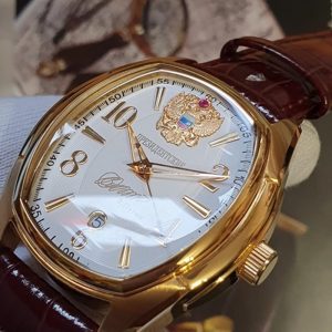 Mặt đồng hồ: Mặt trắng số la mã kim mũi giáo  quốc huy Nga gắn ruby