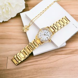 Như một Lì vàng óng ánh màu vàng tay và sáng tay lắm, viền nổi và phú số đính kim cương, ô lịch vuông góc 3h.