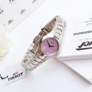 Tissot T096.009.11.151.00 Viền dày vát, núm chỉnh nhỏ dc đánh logo T sắc nhọn đi kèm là bộ dây Rolex Oyster. Mặt số gạch khảm trai xà cừ nhẹ hồng nhẹ nhàng xjnh tươi, lịch ngày nổi bật tại góc 6h.